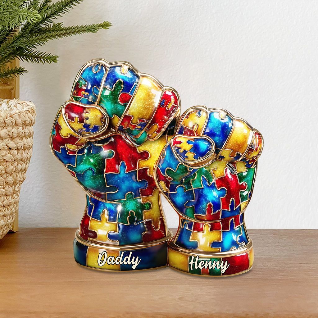 Autism Hand Dad And Kid - Personalized Autism Awareness Custom Shaped Acrylic Plaque