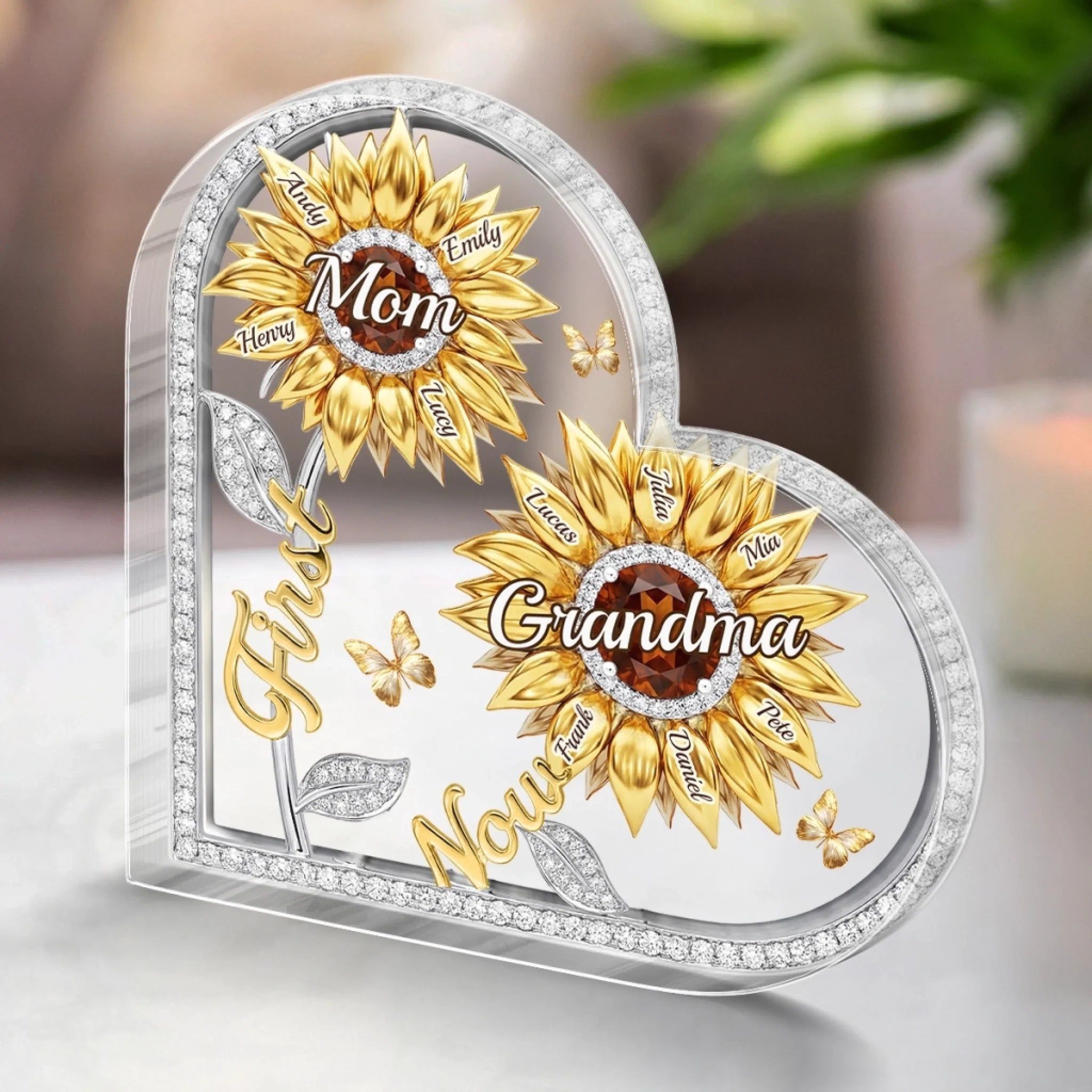 Custom Sunflower Acrylic Plaque - Personalized Mother's Day Birthday Gifts For Mom, Grandma - Forever Our Sunshine