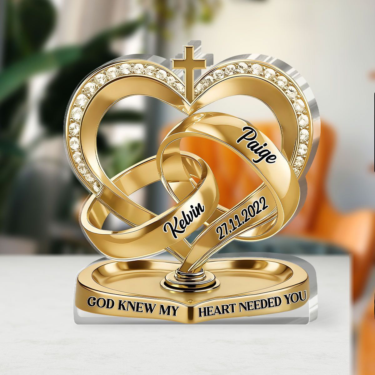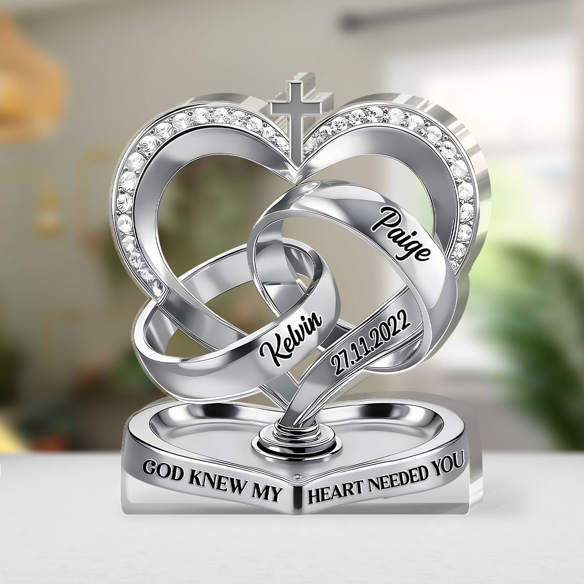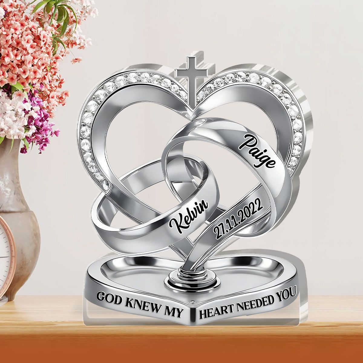 Personalized Christian Wedding Acrylic Plaque | God Knew My Heart Needed You Custom Ring Heart Keepsake